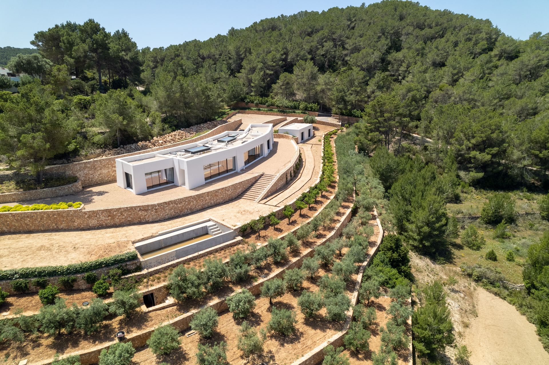 The location couldn’t be better, oriented south-west, and close to the picturesque village of Sant Agustin. The whole estate has an agricultural certification, and a big part of the natural stone terraces have been planted with emblematic Olive trees.