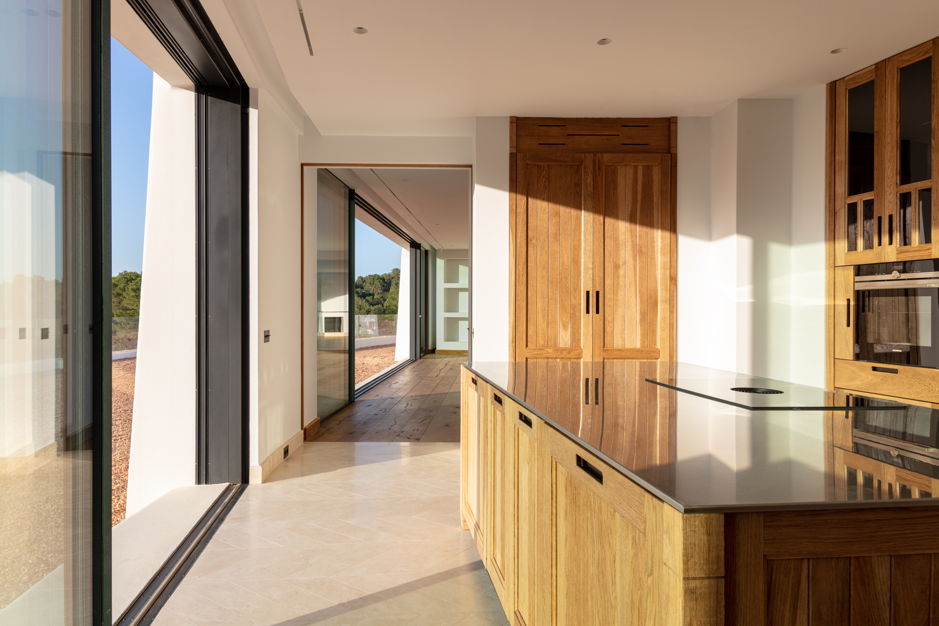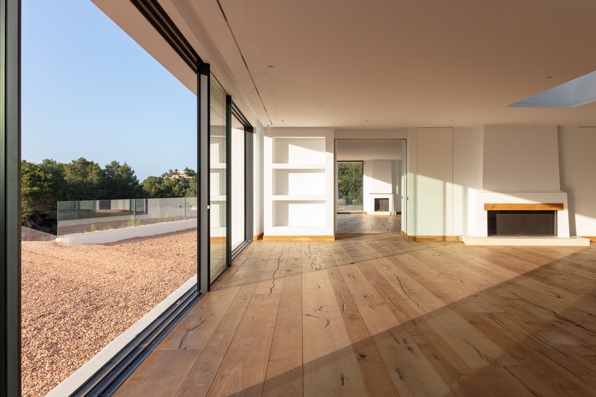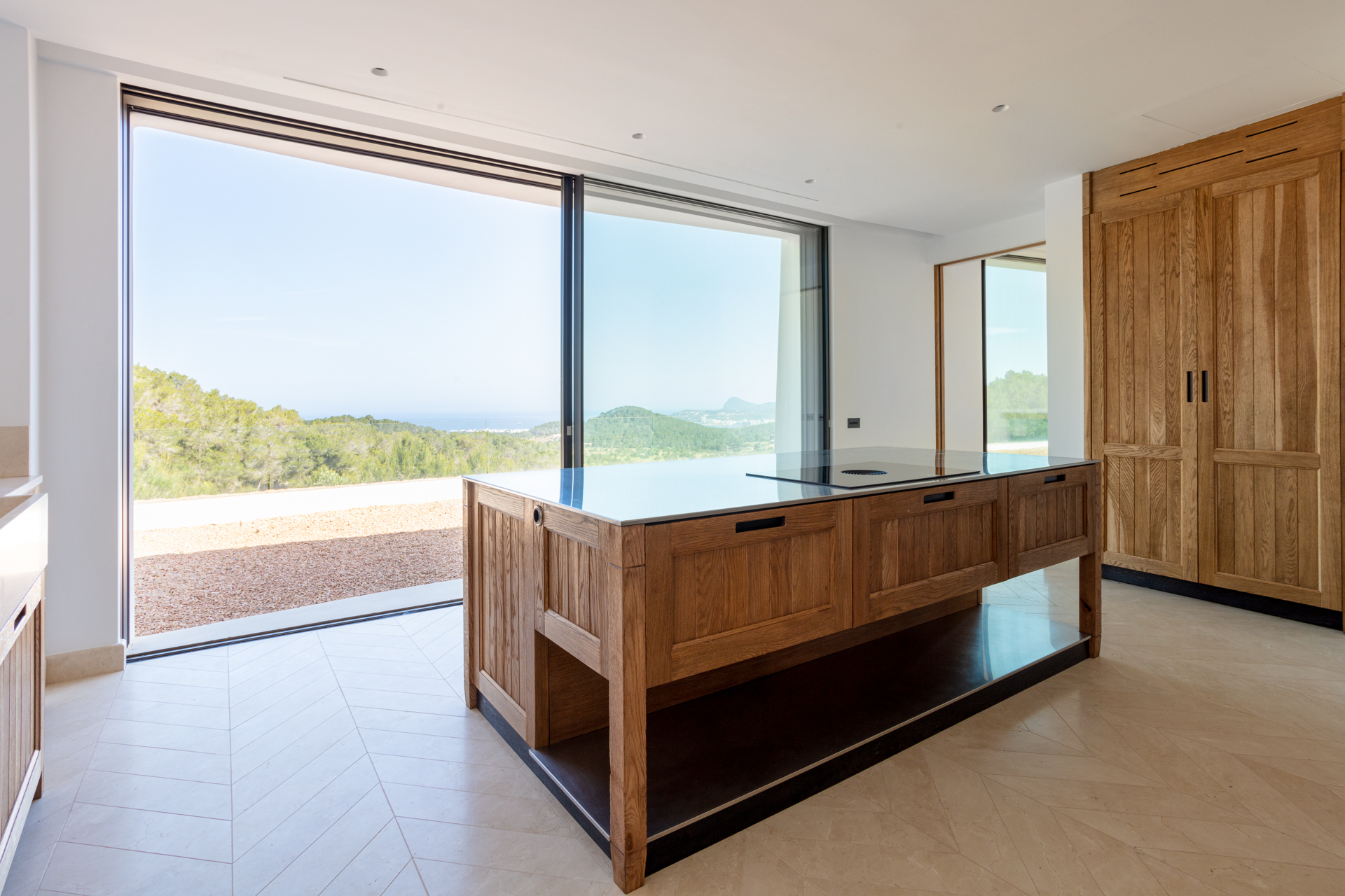 Constructed with vast stone walls, symbolic to the typical Ibizan finca, yet with architectural grandeur. This amazing villa was designed keeping the islands essence in mind, while wanting to create impressive spaces and using only the best materials. You can really sense the quality in the details, from natural hardwooden floors and doors, to the marble bathtubs and counter tops. Only the best was used in the development of this project. The whole house has minimal frame vitrocsa windows.